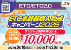 期間中にキャンペーン取扱店にて申込方法に基づき申込みをおこない、ETCまたはETC2.0車載器を新規に購入・セットアップ・取付けをおこなった方に最大10,000円/台を助成します。詳しくはキャンペーン取扱店の当店までお問い合わせください。