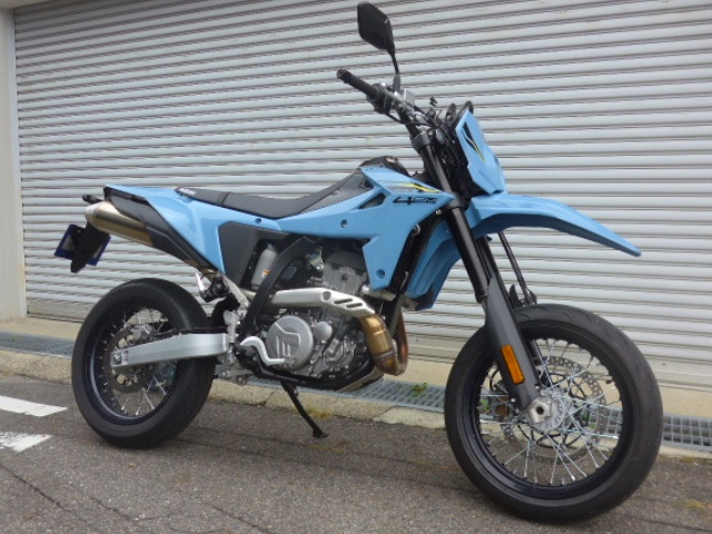 新型DR-Z4Sの走行性能を活かしつつ、前後17インチホイールを装着したスーパーモトモデルのDR-Z4SM。